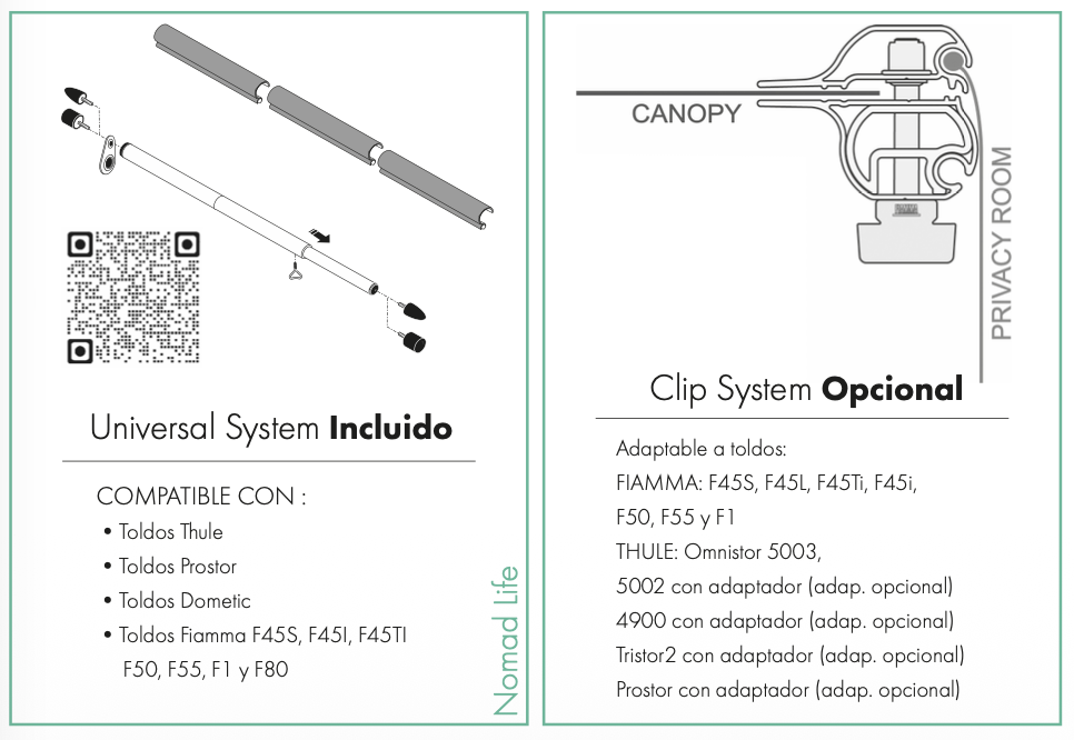 Cerramiento universal de tejido acrílico. Frontal de 300 cm ampliable con módulos adicionales, ideal para cualquier caravana o autocaravana.